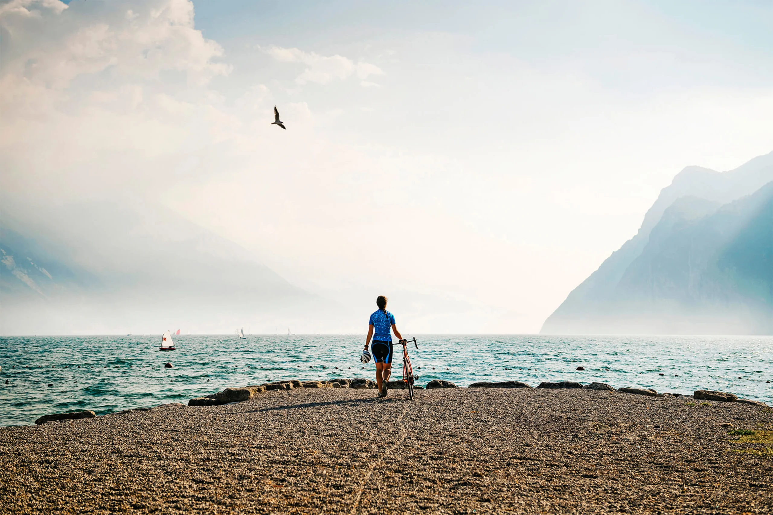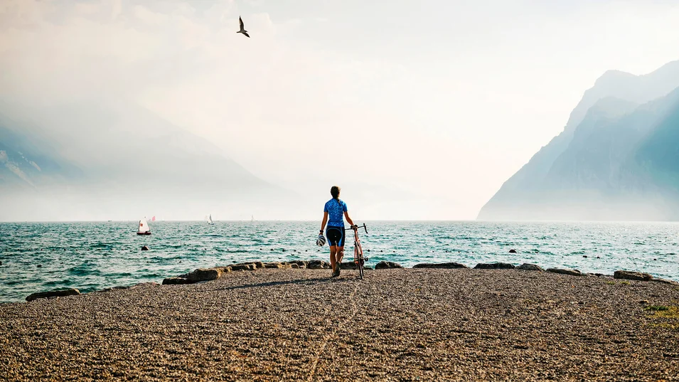 Per 12 chilometri, il percorso si inerpica tra i boschi fino al Monte Velo, dove si può ammirare il suggestivo paesaggio della regione Garda Trento, fino a raggiungere il Passo Santa Barbara a 1130 metri di altitudine. Una ripida discesa porta al paese di Ronzo Chienis, dove si gira a sinistra e si attraversa il paese. Da qui inizia la salita al Passo Bordala, seguita da una discesa panoramica attraverso la Valle dell'Adige, che all'inizio è stretta e ripida e poi diventa più ampia. Al primo bivio si gira a destra in direzione di Villalagarina, passando per i paesi di Castellano, Pedersano e Nogaredo. Arrivati a Villalagarina, si gira a destra e si imbocca la strada provinciale che porta a Mori passando per Marano e Isera. Qui si imbocca la pista ciclabile verso Nago, che attraversa la riserva naturale del Lago di Loppio e supera il Passo S. Giovanni. Alla fine di Nago, alla rotonda si gira a sinistra e si scende verso Torbole sul Garda.