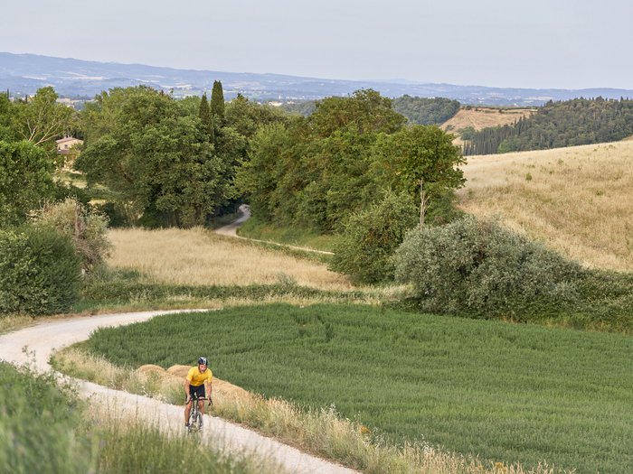 Een middelzware tocht van 75 km door de Sienese en Florentijnse Valdelsa, gekenmerkt door glooiende heuvels en typische Toscaanse landschappen. De route leidt eerst naar Castel San Gimignano en vervolgens naar Colle di Val d'Elsa. Vanaf daar voert de route langs prachtige panoramische heuvelwegen naar Barberino Val d'Elsa. De route gaat vervolgens richting Certaldo langs de charmante weg van Sant'Appiano. De terugweg naar het hotel voert over de rustige wegen van San Benedetto, achter San Gimignano.