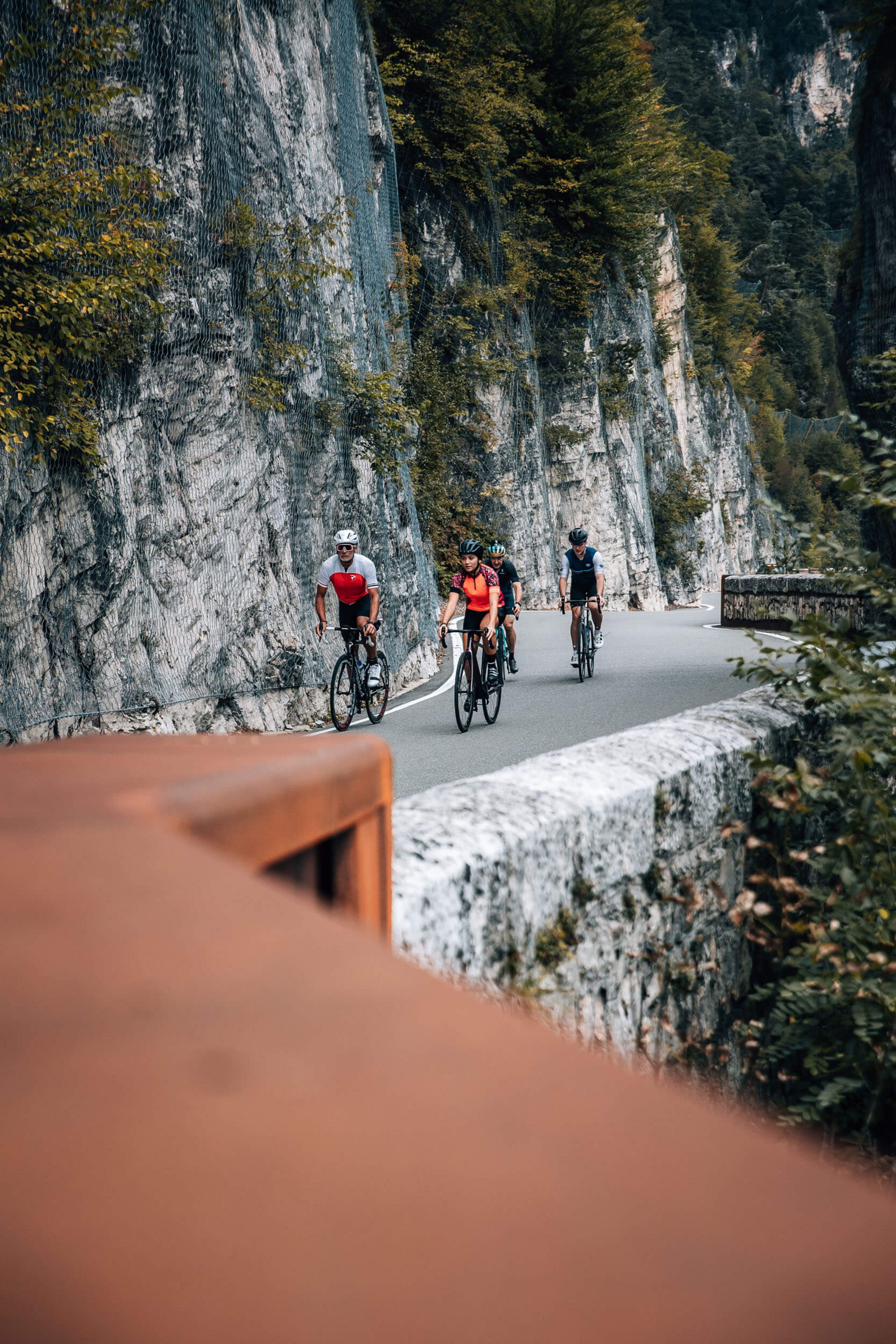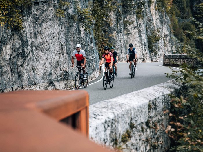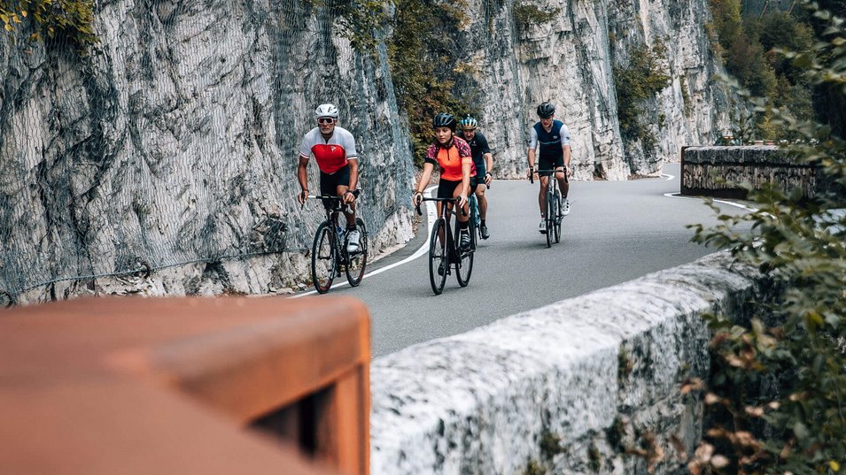 Die Mendelrunde gehört zu den klassischen Rennradstrecken Südtirols und startet in Tramin. Von dort führt sie durch das Etschtal ins Trentino bis nach Cles, dem Heimatort des früheren Profis Maurizio Fondriest. Am Santa-Giustina-Stausee beginnt der Anstieg zum Mendelpass: eine gleichmäßige Auffahrt mit vielen Kehren und weiten Ausblicken über das Etschtal und den Kalterer See. Auf der Passhöhe lädt ein kurzer Stopp mit Panorama ein, bevor die breite Mendelstraße eine flüssige, lange Abfahrt zurück ins Tal ermöglicht. Früh zu starten lohnt sich, ebenso wie der autofreie Radtag im September. Da es unterwegs nur wenige Einkehrmöglichkeiten gibt, sollte man genügend Wasser und Snacks dabeihaben.